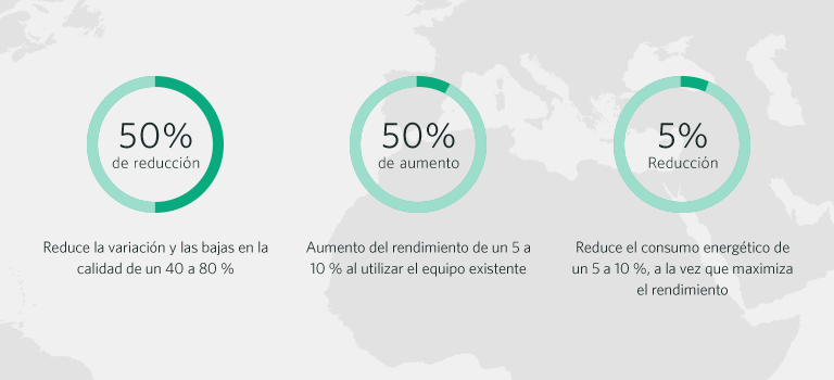 Todas las plantas cuentan con oportunidades para mejorar el rendimiento del proceso y de sus unidades productivas, desde reactores y columnas de destilación hasta fraccionadores, calentadores a fuego directo y otros. Todas las plantas tienen la posibilidad de reducir la variabilidad, con lo que mejoran así la calidad del producto, aumentar la disponibilidad y capacidad de su unidad, reducción del consumo energético y sus materías primas.