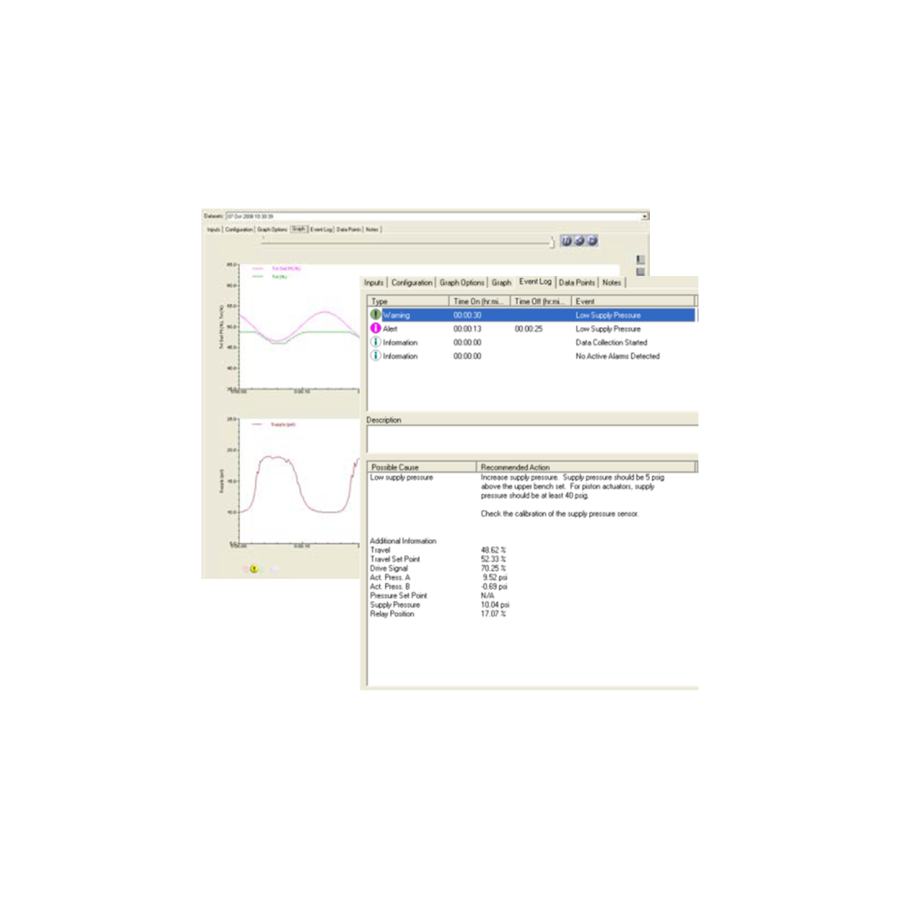 Configuration and Diagnostic software allows the user to configure the instrument for optimal performance and monitor a valve’s health. This can be done while the valve is still in-service without disturbing the process. ValveLink™ software communicates remotely with both HART® and FOUNDATION™ fieldbus FIELDVUE™ digital valve controllers from a standard PC platform or field device with a user-friendly interface. The software provides valuable data to be able avoid costly shutdowns, configure instruments, improve performance, and properly diagnose instrument issues.