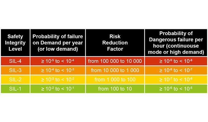 The risk of a device failing to perform its safety function when required. IEC 61511 states that the interval between proof-tests shall be calculated based on the average PFD (PFDavg). The individual failure rates, diagnostic coverage and safety function factor are used for calculation of PFDavg. A lower individual instrument value helps improve the overall reliability.