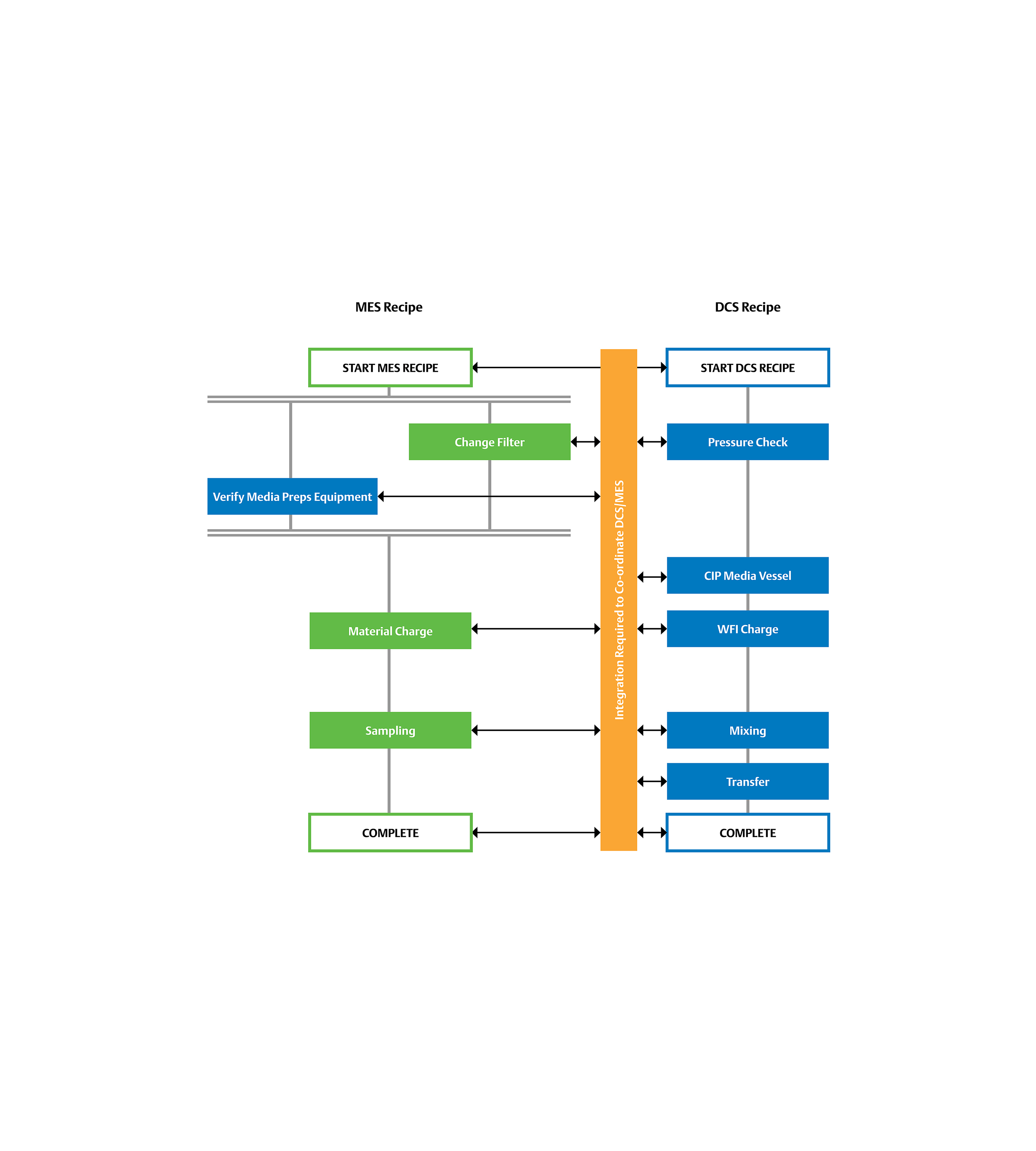 Build a fully integrated manufacturing execution system and distributed control system to create a single recipe execution environment. A fully integrated recipe streamlines testing, reduces system interface maintenance, and lowers total cost of ownership.